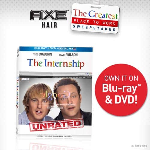 Now through Nov.23 head over to Walmart and visit Axe Sweeps via your cell phone, answer a few easy and fun questions and get entered to win The Greatest Place to Work sweepstakes. This contest is inspired by the movie The Internship starring Vince Vaughn and Owen Wilson. You could win ALL of the following prizes! Yes I said ALL!