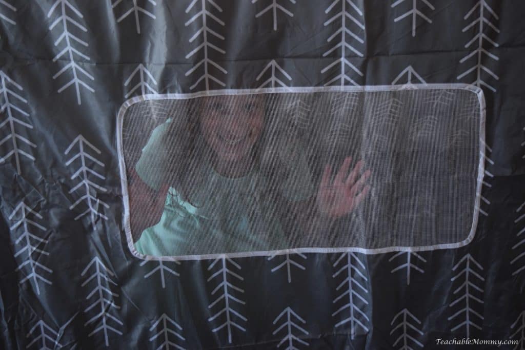 Speaking of spills, the tent is made from a wipeable material for easy clean up. Above all, the laughter and smiles of these two enjoying the Discovery Kids Tent sold me. They love it so I love it.
