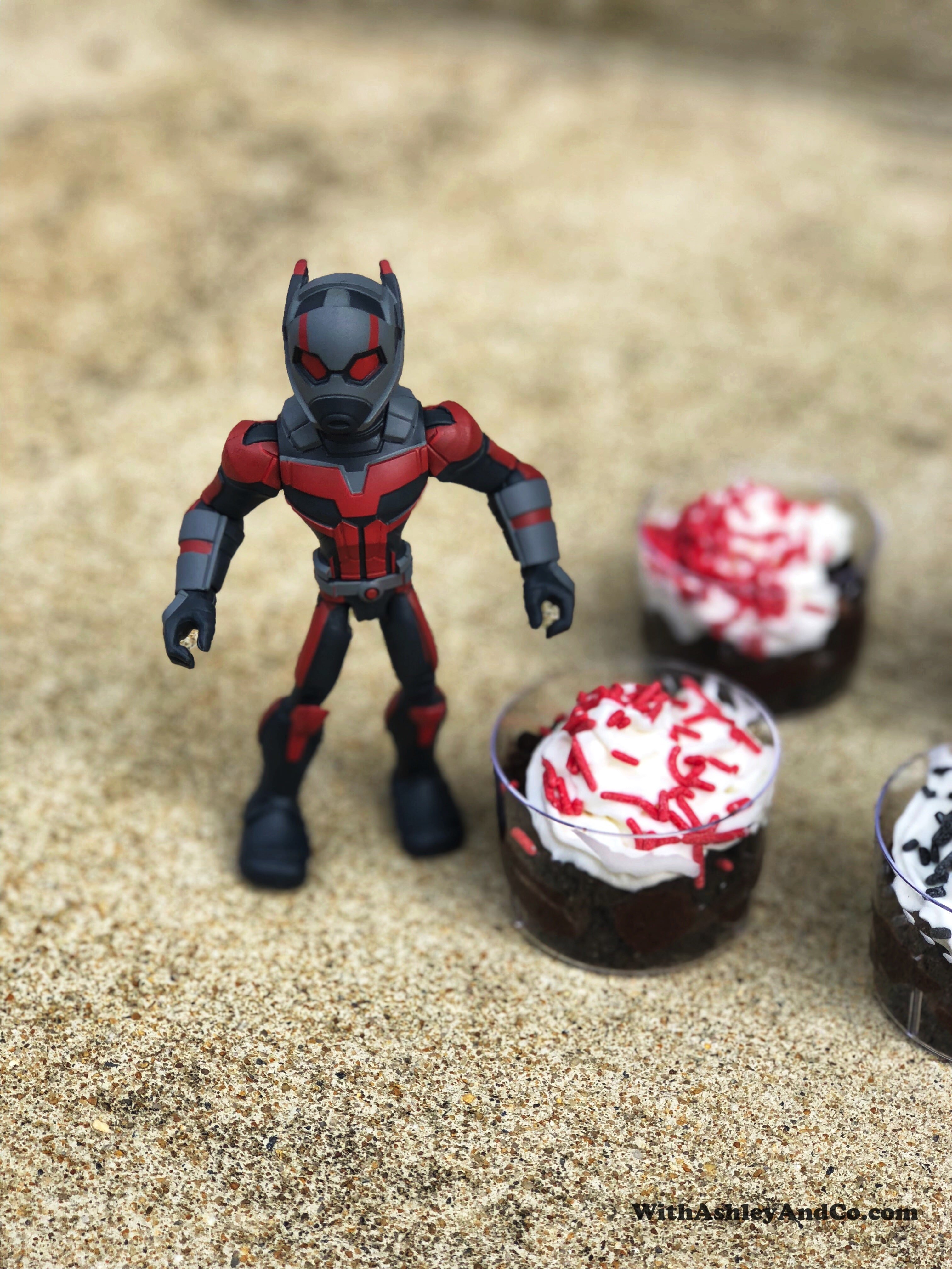 Any movie night, needs a themed dessert. At least, that's my opinion. So what would an Ant-sized hero enjoy? Mini dirt pudding cups!