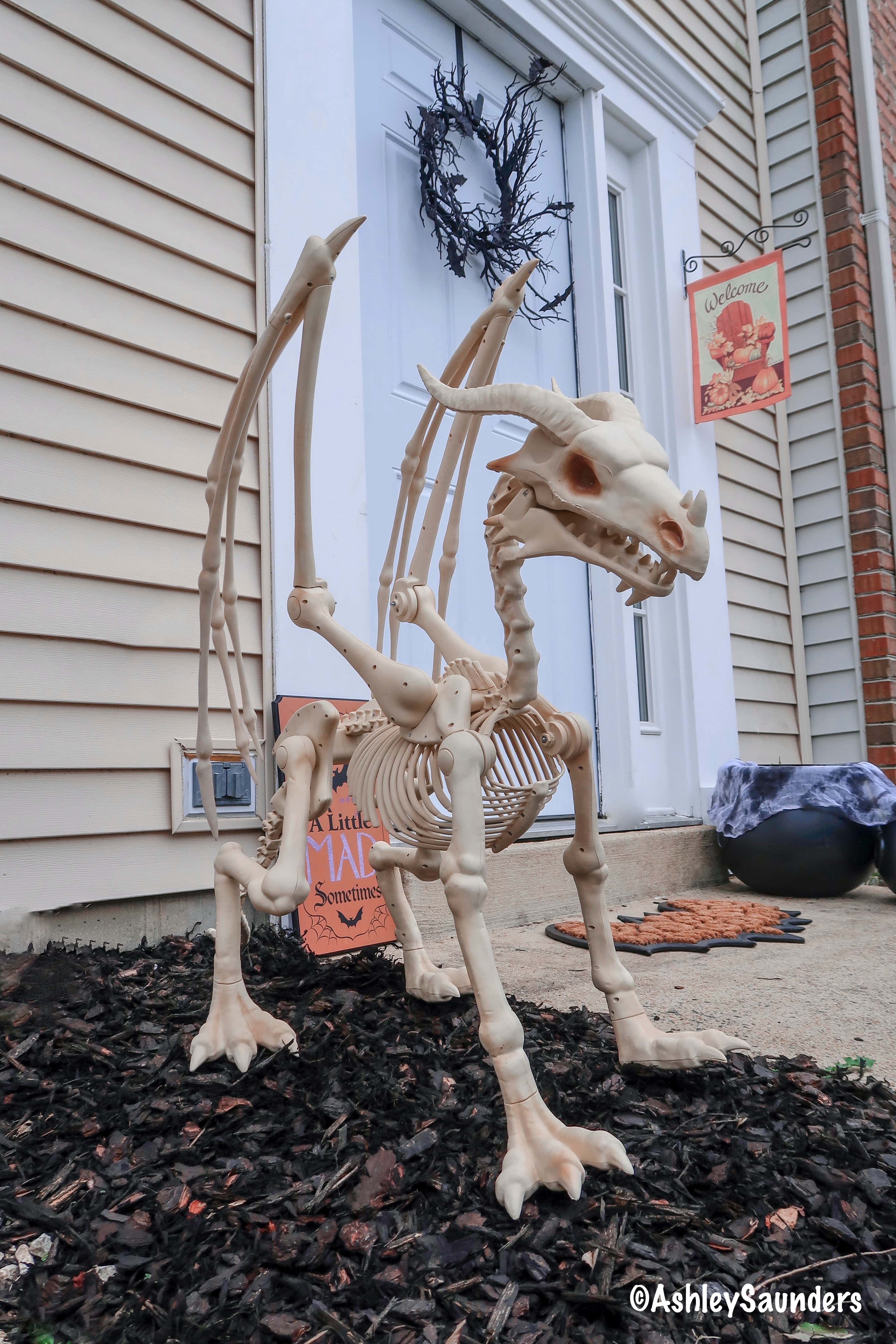 Every house needs at least one skeleton. This year though, hear me out, don't just get a regular human skeleton, spice it up with a DRAGON SKELETON. My buddy Drogon here (yeah totally named for my fave Game of Thrones dragon) is the highlight of my front yard.