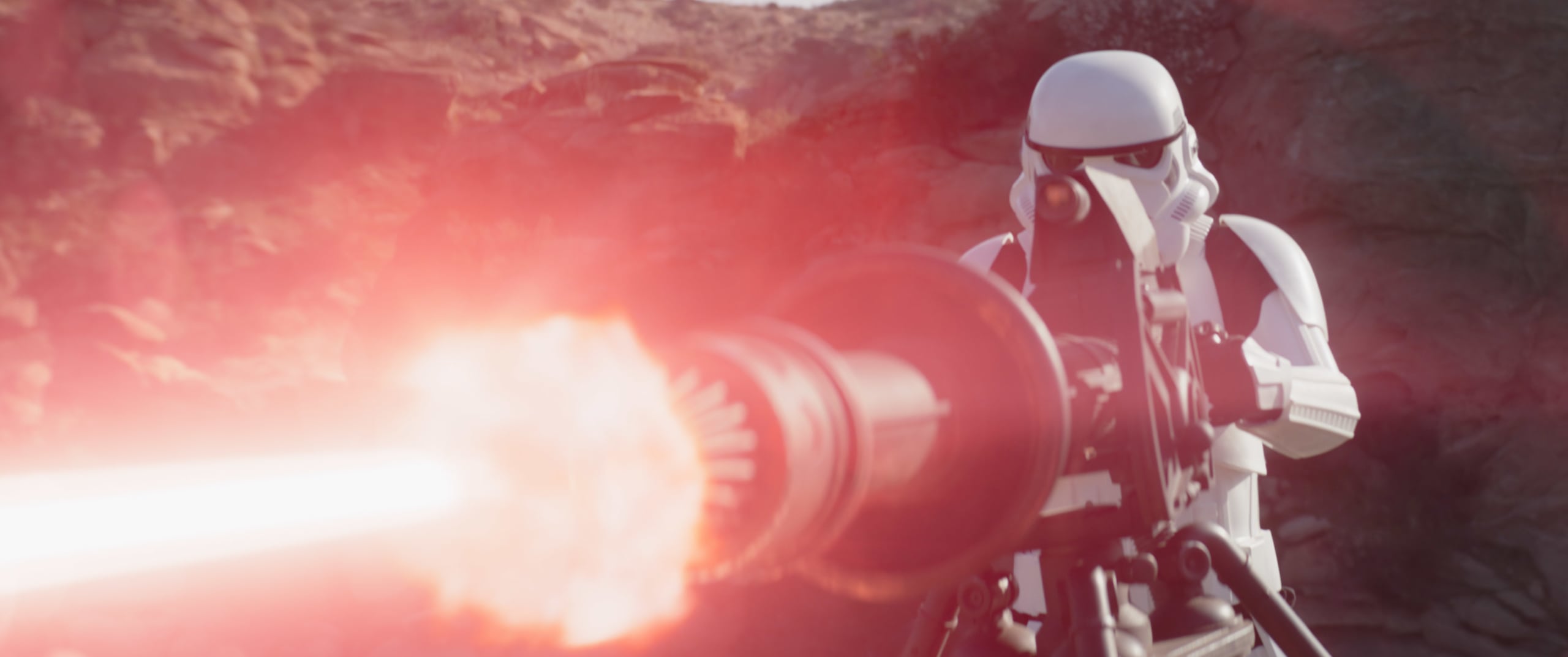 One of the weapons used by the troopers when fighting off Fett, Mando, and Fennec is the repeating blaster. An early version of this was used in the attack on the Hoth base in The Empire Strikes Back. Variations have been seen in video games, Legends novels, and The Clone Wars.